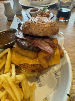 Great service and lovely food. Only downside was the burger are the thin ones but the other meals are very nice. A great place to go out for a spot of lunch or dinner. Definitely go again