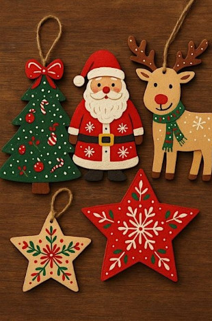 Join us for a one off Christmas Decoration to paint or decorate a set of wooden tree decorations and freestanding ornaments to take home.