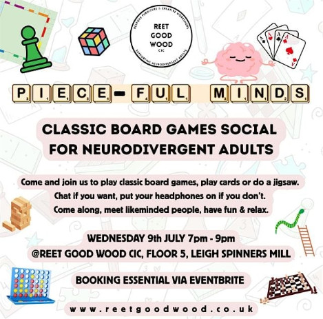 Join us in our studio where you get peer support, can play classic board games, cards, or do a jigsaw with other Neurodivergent adults.
