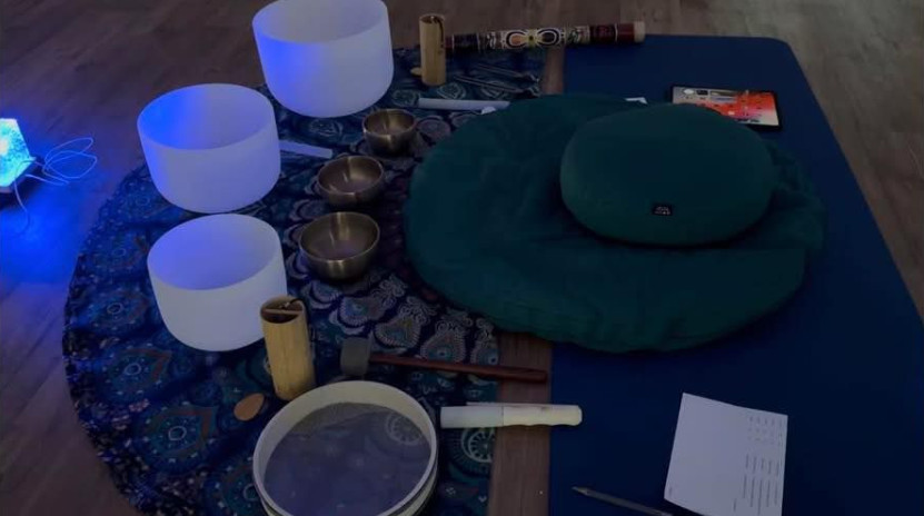 As you settle into a comfortable space, you'll be immersed in the soothing sounds of crystal singing bowls, Tibetan bowls, Koshi chimes, ocean drum, and other therapeutic instruments. These harmonious tones are designed to gently quiet the mind, release tension from the body, and restore energetic balance.