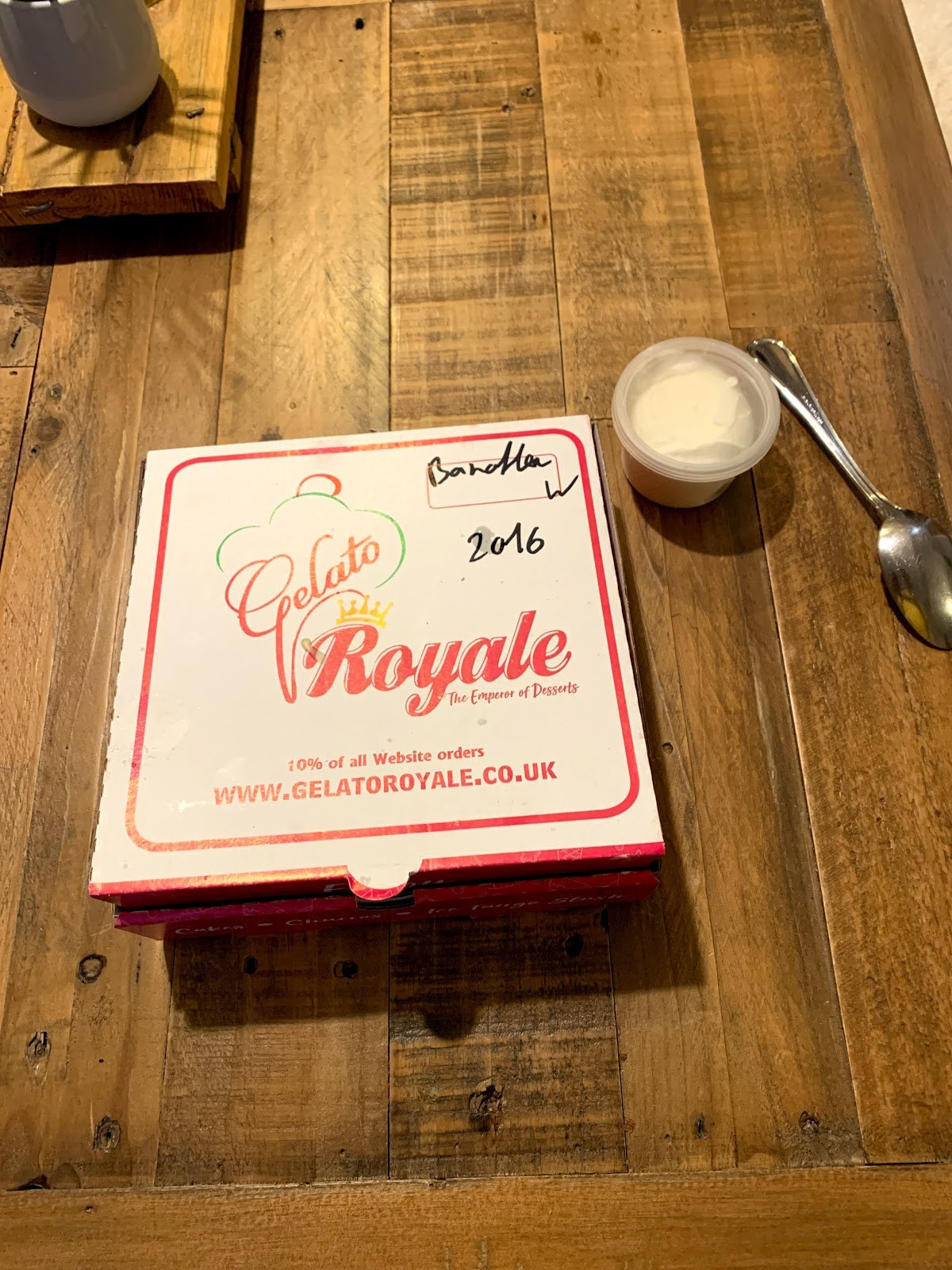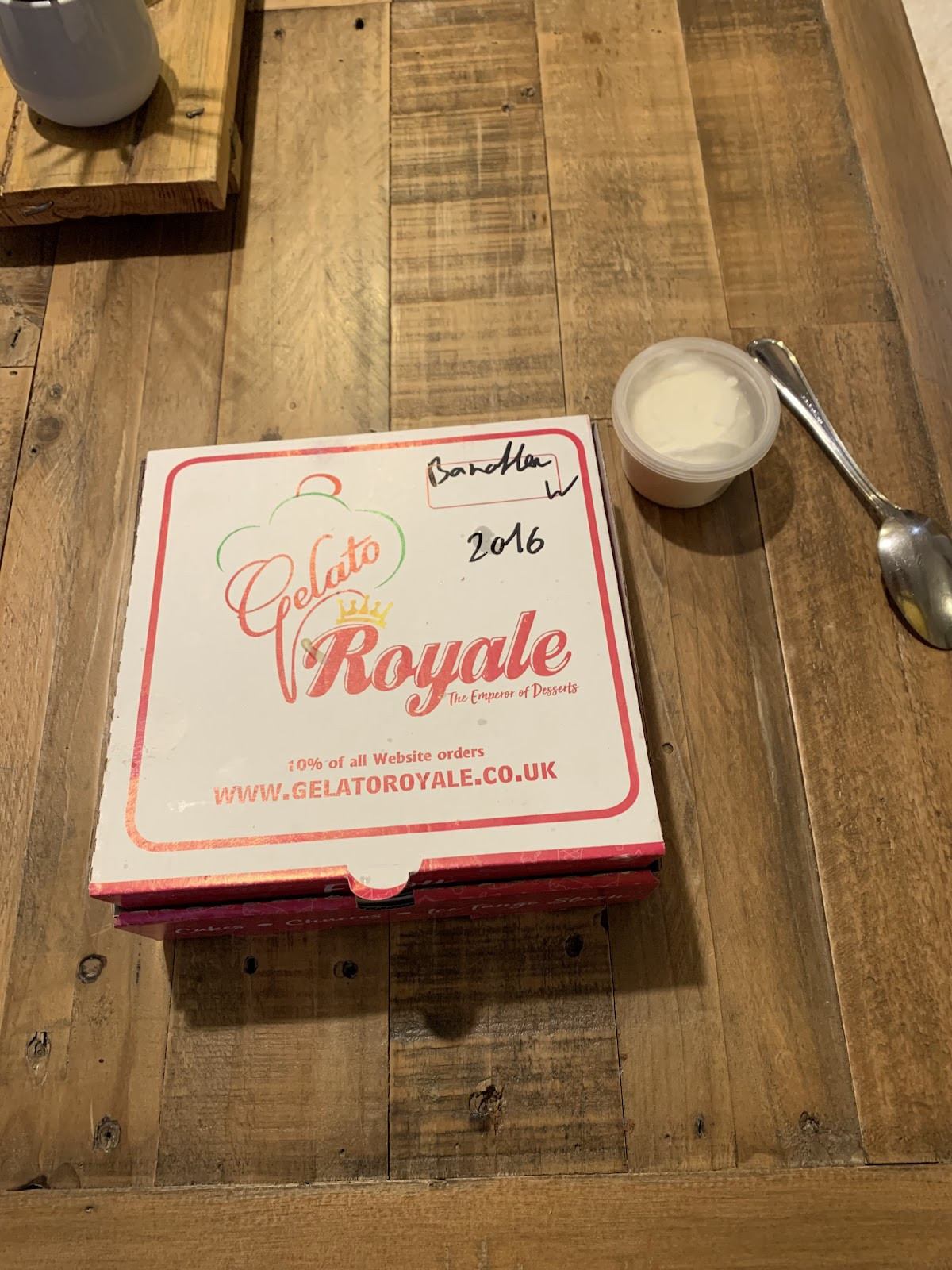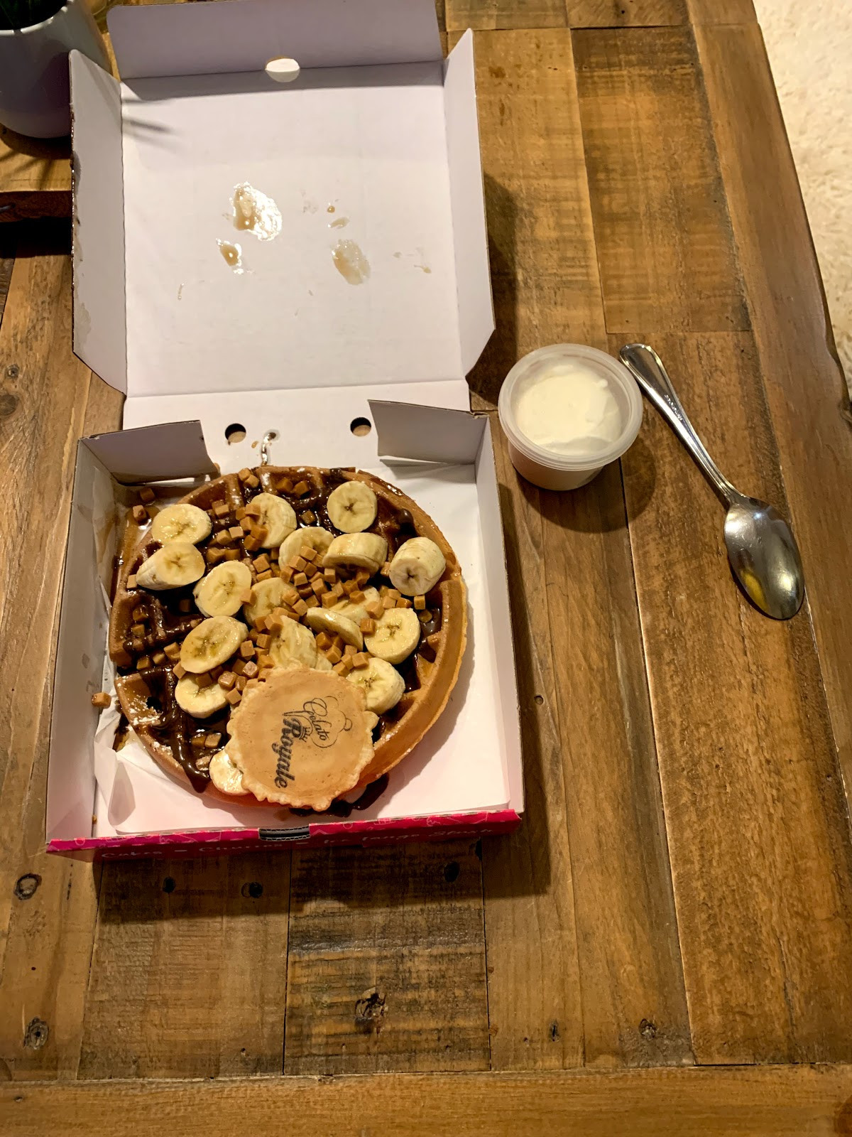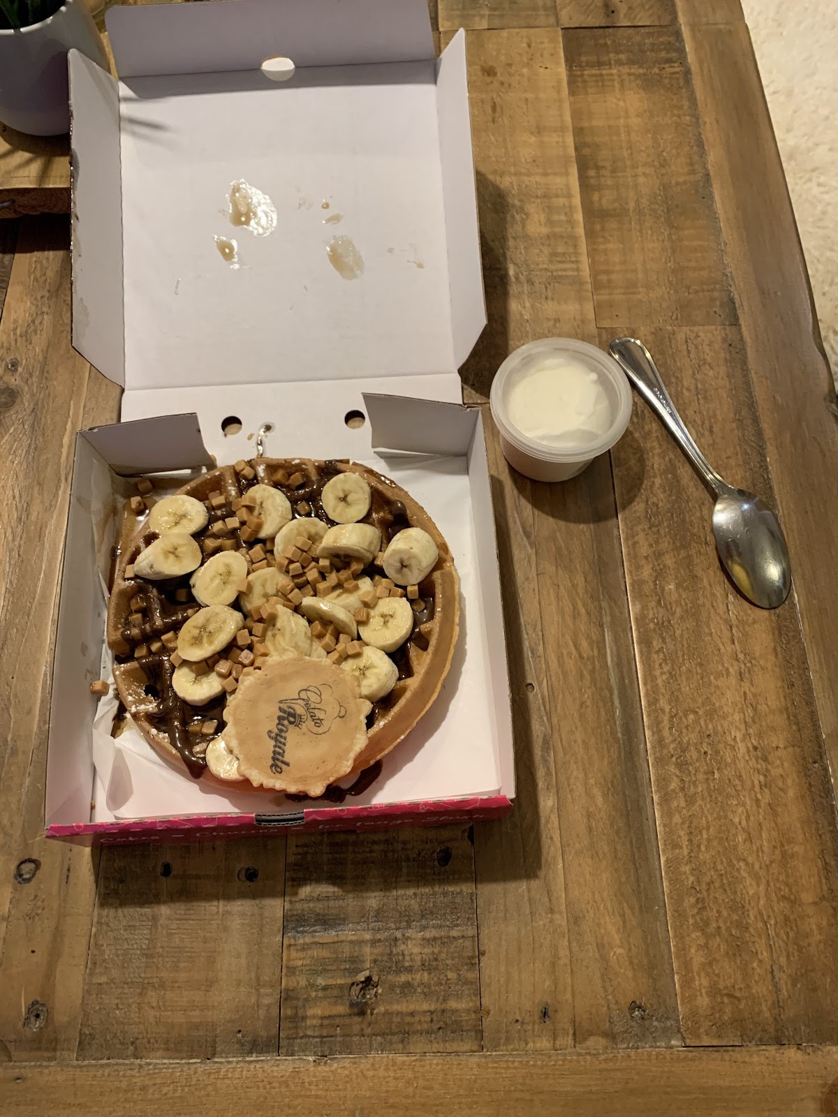 Had a banoffee waffle delivered, absolutely delicious and huge! Had half last night the rest shortly! And the gelato is lovely